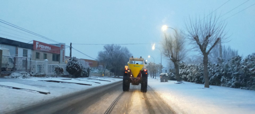 Durante toda la madrugada se ha esparcido sal en las vías principales de la población, así como en lugares de uso público de primera necesidad como el Centro de Salud, farmacias, puesto de ambulancias del Sescam, etc. En la zona peatonal, que debido al pavimento no puede esparcirse sal, se está actuando de forma manual para eliminar la nieve y el hielo que pueda formarse.