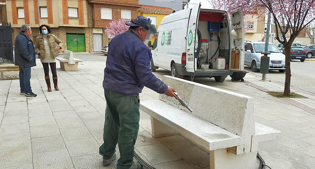 La concejala de Servicios Urbanos, Cristina Bueno, explica que este servicio de limpieza permite al Ayuntamiento actuar en elementos de mobiliario urbano, como estos bancos, así como la eliminación de grafitis y pintadas, realizándose con materiales específicos para esta labor en función de la superficie, consiguiendo unos buenos resultados sin dañar las superficies sobre las que se actúa. El servicio es prestado por un operario, que dispone de un vehículo especial para realizar esta tarea.