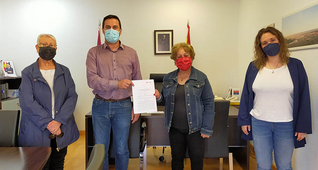 El alcalde de Villacañas, Jaime Martínez, y la presidenta de la Asamblea Local de Cruz Roja, Maruja López, han firmado un convenio de colaboración a través del cual el Ayuntamiento concreta su colaboración con la ONG en Villacañas para apoyar el proyecto de atención a personas vulnerables que viene desarrollando Cruz Roja en la localidad.