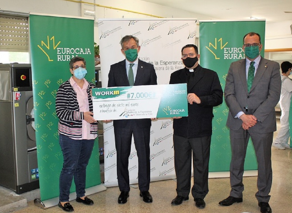 La Fundación Eurocaja Rural ha entregado un cheque con valor de 7.000 euros a la Fundación Madre de la Esperanza de Talavera de la Reina, en reconocimiento al proyecto ‘Nuevos retos. Nuevas oportunidades. Servicio de lavado con barrera sanitaria’, una de las diez iniciativas ganadoras de la 5ª edición de los ‘Premios WORKIN’.