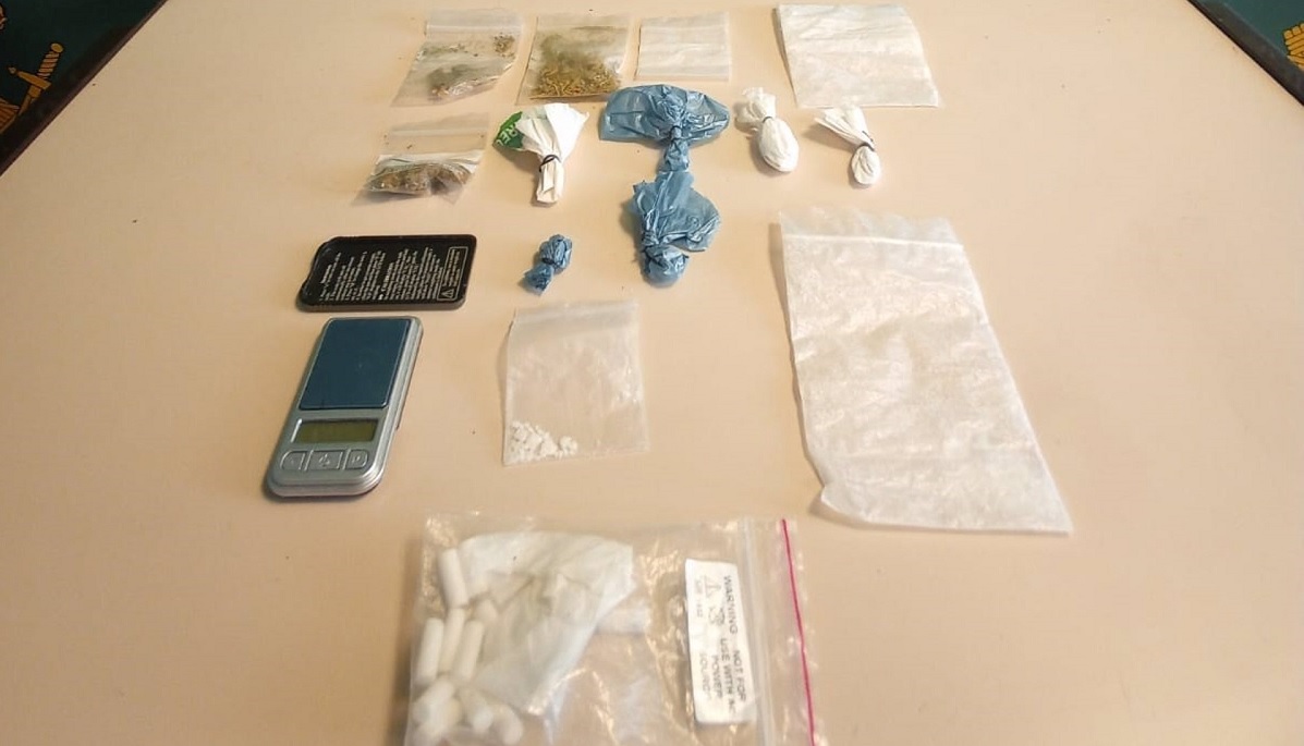 Se hallaron evidencias de consumo de sustancias estupefacientes, procediendo a la incautación de 7 papelinas y 3 envoltorios con restos de cocaína, 3 bolsitas-dosis de marihuana, 1 cigarro porro y una báscula de precisión en el interior de una bolsa con dinero.