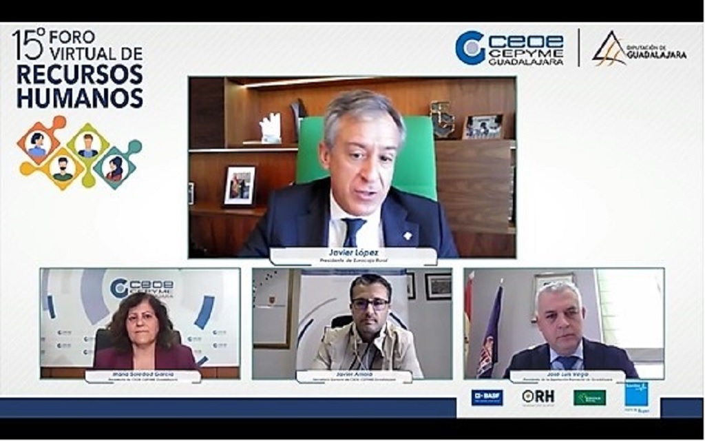 Eurocaja Rural ha participado esta mañana en la apertura de la XV edición del Foro de RRHH promovido por CEOE-CEPYME Guadalajara, que se celebrará de manera virtual debido a las restricciones por la crisis sanitaria originada por la COVID-19.
