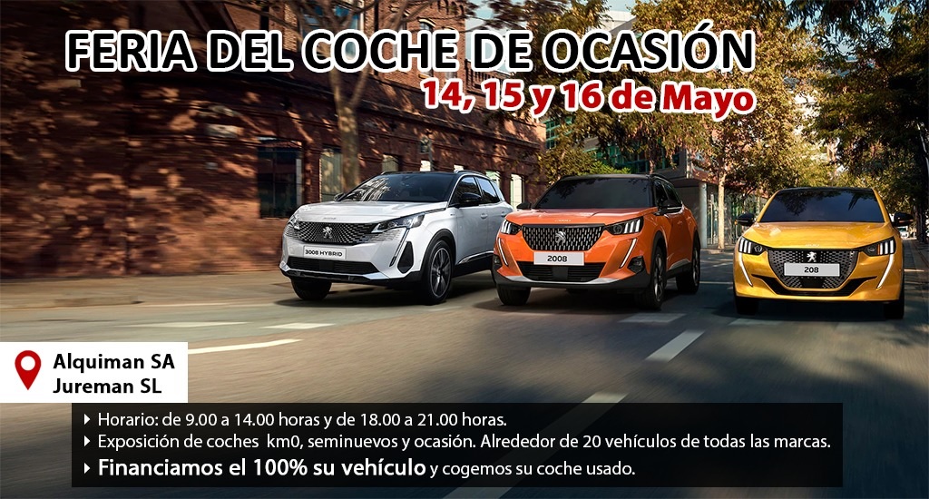 Los días 14, 15 y 16 de mayo, Alquiman S.A. de Tomelloso ha organizado una exposición de coches km0, seminuevos y ocasión en sus instalaciones, ubicada en la carretera de Tomelloso a Argamasilla kilómetro 0,800.