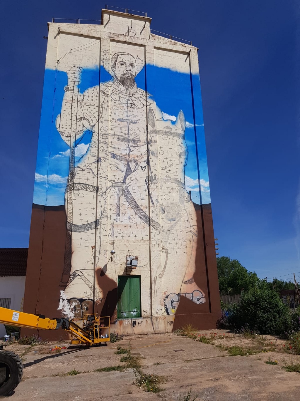 Se tratará de cuatro murales decorados con graffiti: “Queríamos que Don Quijote y Sancho Panza estuviesen presentes como signos de identidad de nuestra tierra, y qué mejor que empezar con ellos”, ha señalado Jops en declaraciones a los medios de comunicación. Llevan seis días de trabajo y espera terminarlo en unos diez días más.