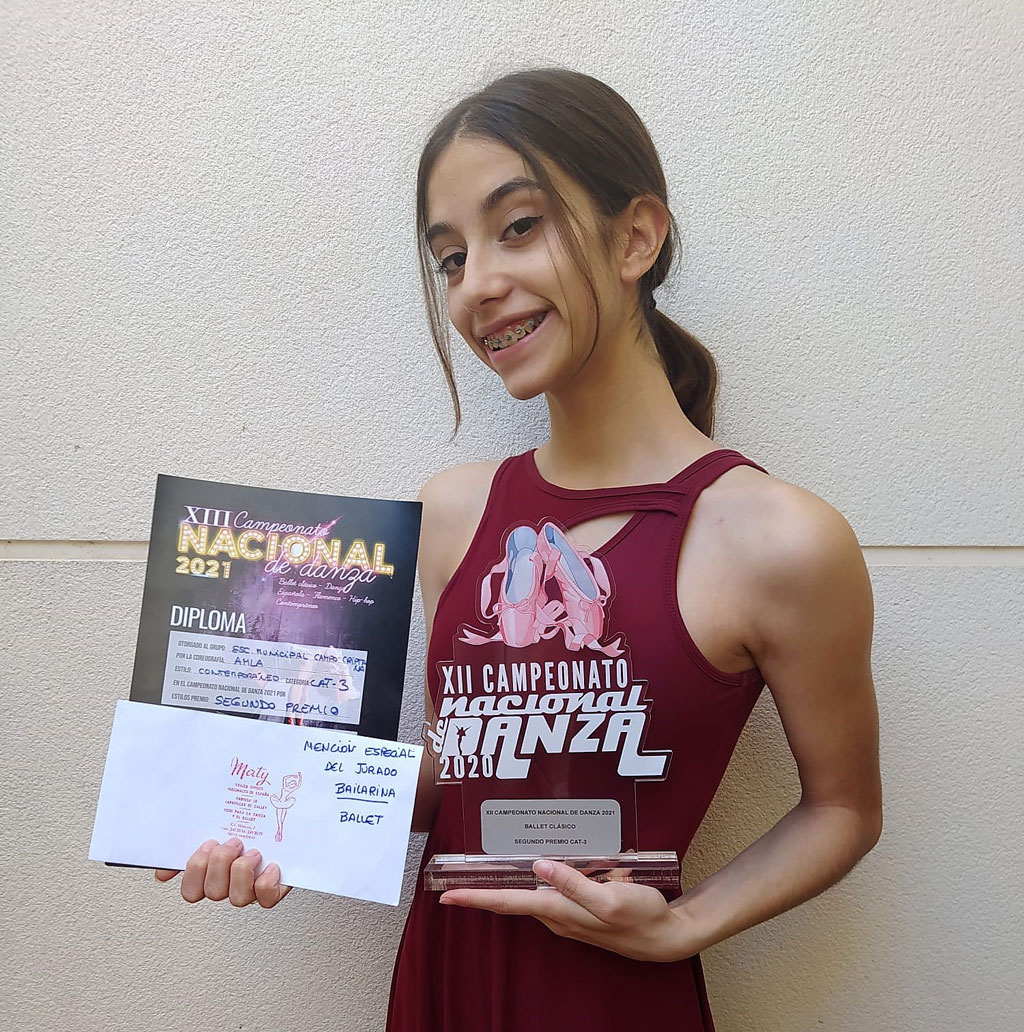 Nuevo premio para la Escuela Municipal de Música y Danza de Campo de Criptana y en especial para la joven bailarina Paula Martínez Martínez, quien ha conseguido el premio a la mejor bailarina de la especialidad de Ballet Clásico y Contemporáneo en el Campeonato Nacional de Ventas de Retamosa, celebrado este pasado 15 de mayo.