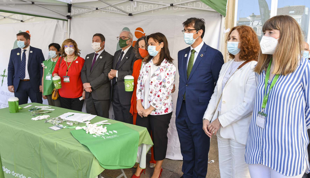El presidente de la Diputación de Ciudad Real, José Manuel Caballero, junto al presidente del Gobierno regional, Emiliano García-Page, la Subdelegada del Gobierno en Ciudad Real, María Ángeles Herrero, y la alcaldesa de la capital, Pilar Zamora, han colaborado con la cuestación que la Asociación Española contra el Cáncer ha realizado hoy de forma física en diferentes puntos de la ciudad.