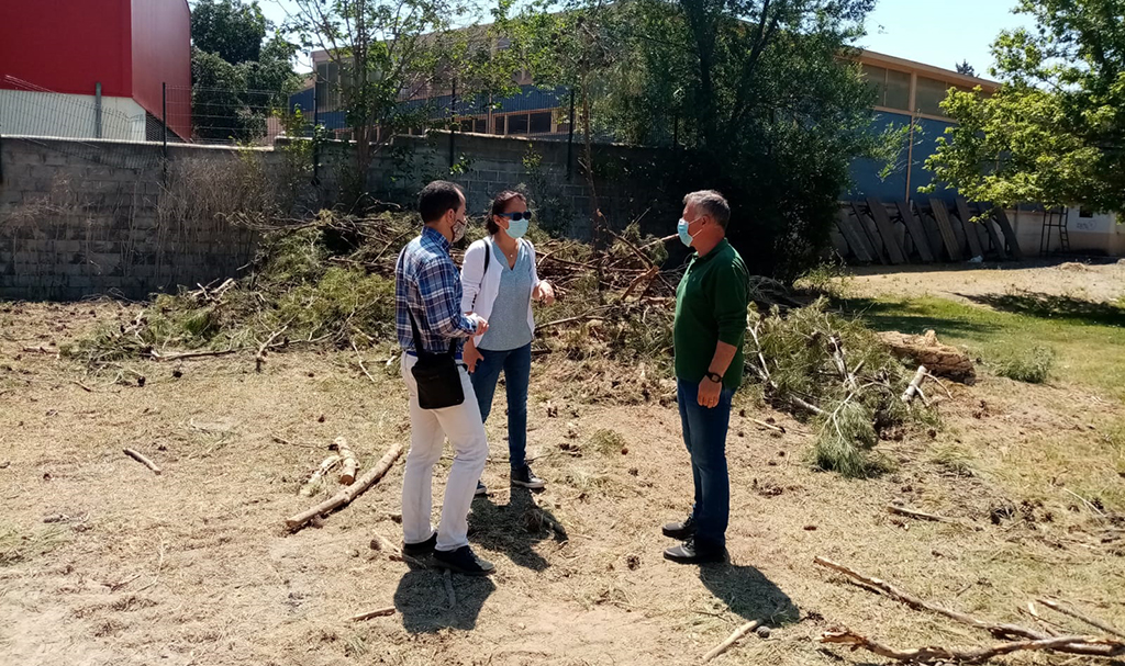 De forma paralela, a las primeras acciones para la construcción del edificio multiusos, se está trabajando en la poda y saneamiento de las zonas verdes en el interior y en las zonas cercanas al recinto de la Piscina Municipal como el conocido Parque de la Serna, con el fin de permitir la entrada de la luz, ya sea la solar o la del alumbrado de las farolas existentes, para aportar la iluminación necesaria al césped y plantas de menor envergadura y convertir los espacios de paseo en visibles y transitables para su uso y disfrute.