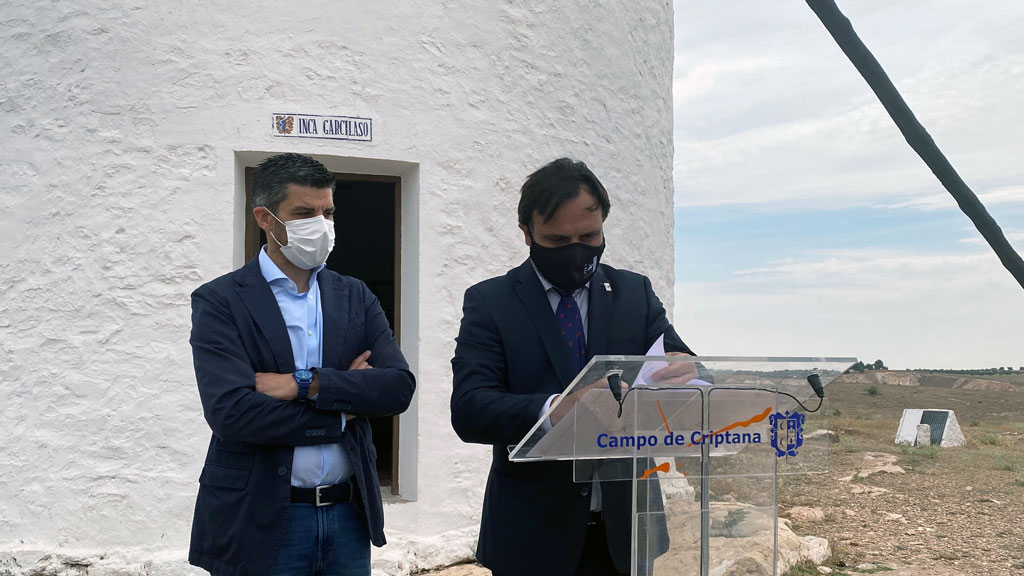 El alcalde de Campo de Criptana, Santiago Lázaro, y el presidente de la DO La Mancha, Carlos Bonilla, han hecho efectiva la firma del convenio para la musealización del Molino Inca Garcilaso y su transformación en el llamado ‘Gigante del Vino de La Mancha’.
