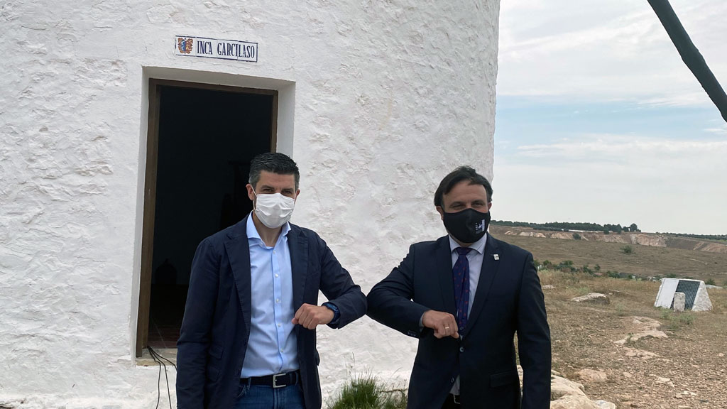 El alcalde de Campo de Criptana, Santiago Lázaro, y el presidente de la DO La Mancha, Carlos Bonilla, han hecho efectiva la firma del convenio para la musealización del Molino Inca Garcilaso y su transformación en el llamado ‘Gigante del Vino de La Mancha’.