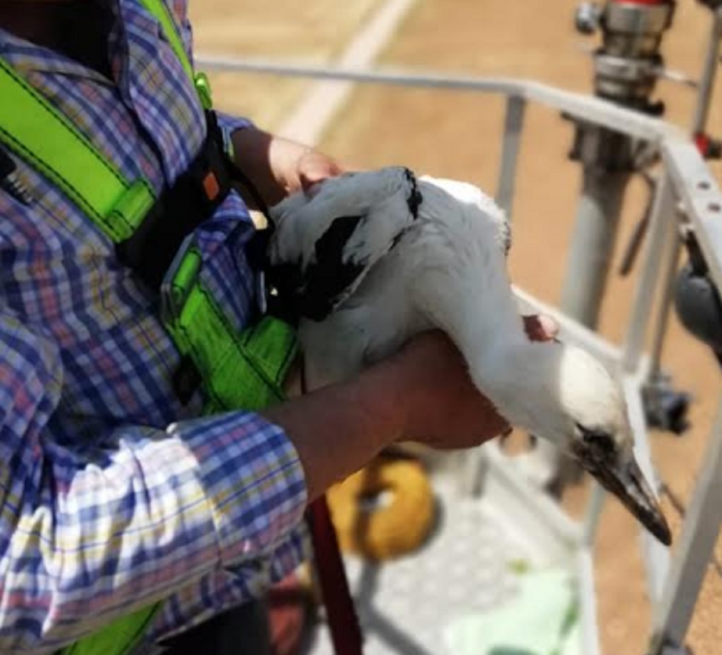 Al lugar, donde hay bastantes nidos en las torretas y las chimeneas, se desplegó un dispositivo compuesto por un vehículo contra incendios y un brazo articulado por el que ascendió un bombero y personal de El Chaparrillo para salvar al polluelo, que fue puesto en libertad tras un estudio in situ mediante el que se comprobó que estaba en perfecto estado.