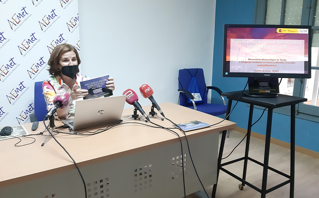 La delegada de la Agencia Estatal de Meteorología (Aemet) en Castilla- La Mancha, Paloma Castro, ha hecho un resumen esta mañana de las predicciones para este verano en la región, tanto en cuanto a temperatura como en precipitaciones. En temperatura se prevé una anomalía cálida de un grado en toda Castilla-La Mancha que aumentará en medio grado en la parte occidental, Toledo y Ciudad Real; medio grado en Guadalajara y un grado en Albacete y Cuenca.