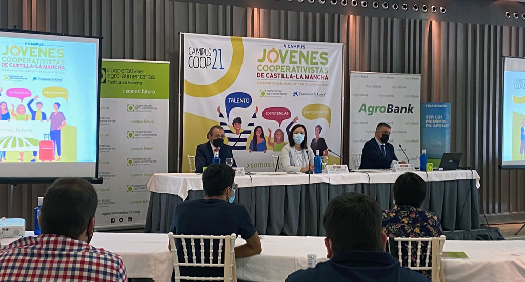 Juan Miguel del Real, director de Cooperativas Agro-alimentarias Castilla-La Mancha, explicaba en la jornada inaugural que este campus es punto de encuentro entre los y las jóvenes participantes, con el objeto de concienciar de la importancia económica y social del cooperativismo, y la necesidad de propiciar el relevo generacional para que este colectivo se incorpore a la gestión de las cooperativas y explotaciones agrarias en condiciones de liderar proyectos empresariales con éxito. “Un V Campus que esperemos siga siendo un foro de referencia para los y las jóvenes del sector, donde además de mejorar su formación, fortalezcan sus contactos y su motivación”.