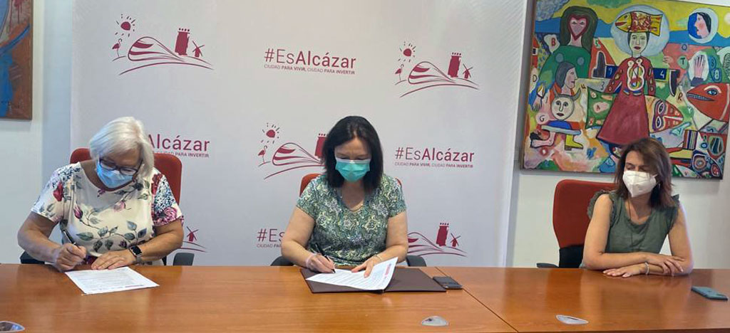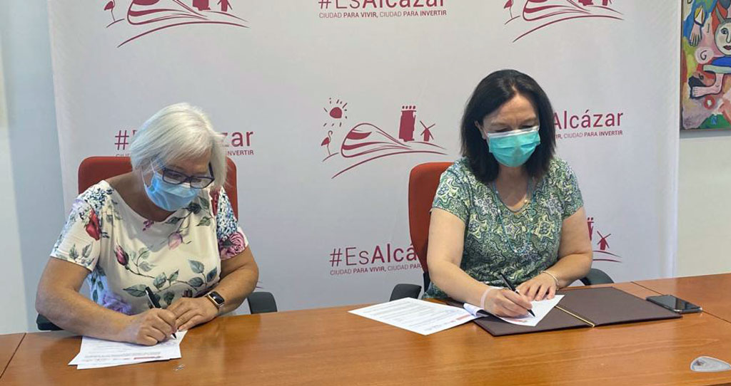 La alcaldesa de Alcázar de San Juan, Rosa Melchor, y la presidenta de la Asociación de Familias de Personas con Discapacidad (AFADIS), Julia Abengózar han renovado el convenio anual de colaboración para la prestación del servicio de transporte adaptado.
