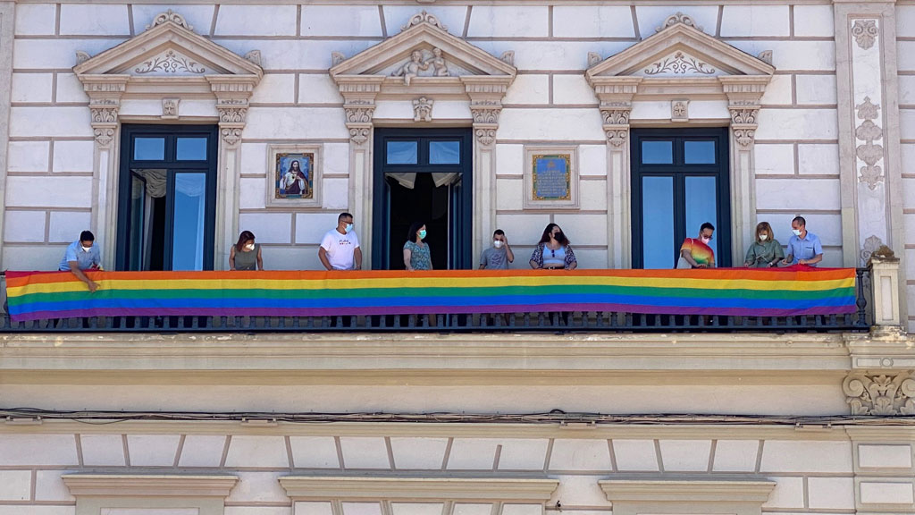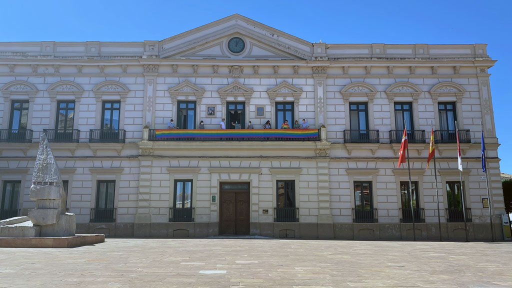 El balcón del Ayuntamiento de Alcázar de San Juan luce desde este lunes 28 de junio, Día Internacional del Orgullo, la bandera arco iris. Un acto simbólico que ha contado con la participación de los representantes de la Asociación Plural LGTBI Mancha Centro y con miembros del Equipo de Gobierno.