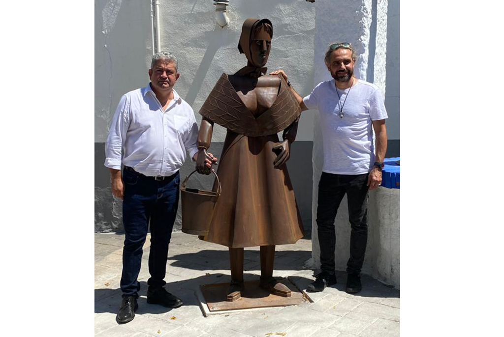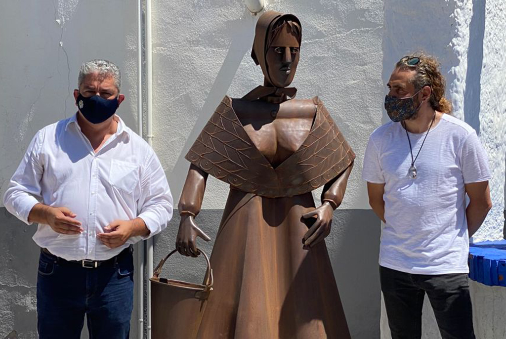 Manoli Justo que se encarga de abrir el acto indicaba que la obra presentada complementa al Quijote instalado en la Plaza de la Constitución y que, en esta ocasión, se ha escogido la Plaza de España porque desean poner en valor diferentes puntos del municipio, que en ocasiones están olvidados y que, sin embargo, forman parte importante de la Historia del municipio.