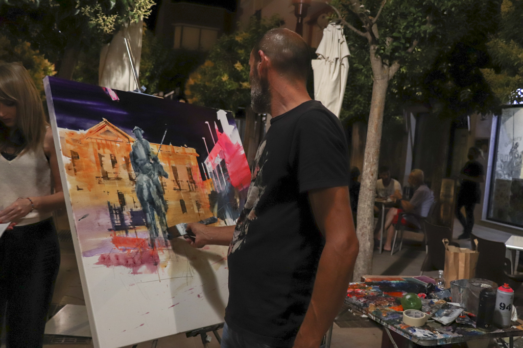 Los lugares más emblemáticos de la localidad se han podido observar desde la visión de cada uno de los artistas. Lugares como el ayuntamiento, la Plaza de España, las estatuas de Don Quijote y Sancho Panza, las Iglesias, como Santa Quiteria, Santísima Trinidad, Santa María, San Francisco, el Torreón del Gran Prior, entre otros rincones han sido los protagonistas de esta noche de encuentro con los pintores. Un encuentro en el que se ha podido observar el proceso completo de elaboración de cada cuadro.