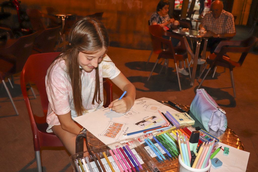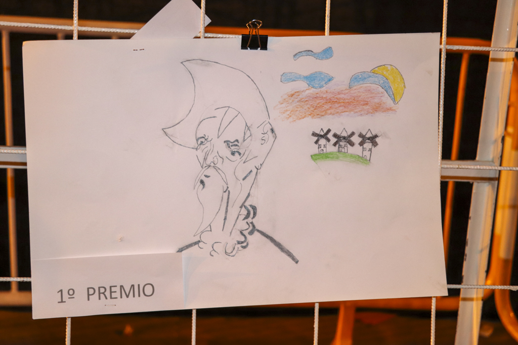 En la plaza de España como es habitual la organización ha repartido el material, convirtiéndose cualquier lugar de la plaza en un estudio de pintura para los participantes. Molinos, trajes regionales, monumentos, platos gastronómicos y cualquier elemento relacionado con el patrimonio y las costumbres han plasmado en sus dibujos los participantes.