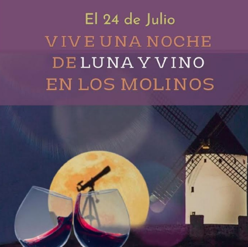 “Vive una noche de luna y vino en los molinos”, tendrá lugar el próximo 24 de julio de 2021 a las 21.30 h en el Cerro de San Antón coincidiendo con la luna llena de verano. Con motivo del esfuerzo llevado a cabo durante estos años, y tras ser galardonadas con los premios regionales de turismo, la agencia de viajes Don Quixote Tours de Alcázar de San Juan (Mejor Proyecto Turístico de Innovación) y Las 7 Cabrillas Astroturismo, implantada en Alcoba de los Montes (Mejor Producto Turístico), se unen para realizar este evento enoturístico.