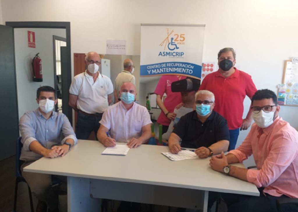 Al acto de la firma han asistido el alcalde de la localidad, Santiago Lázaro, el presidente de Mancha Norte, Carlos Ortiz y el presidente de ASMICRIP, Juan Santiago Ucendo, además de otros miembros de la corporación y representantes de ambas entidades.