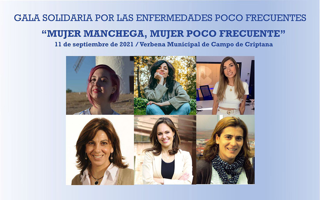 El Instituto de Investigación y Desarrollo Social de Enfermedades Poco Frecuentes anuncia que el día 11 de septiembre de 2021 se celebrará en la verbena municipal de Campo de Criptana una noche cultural solidaria a favor de las Enfermedades Poco Frecuentes. La velada consistirá en una tertulia cultural compuesta por mujeres manchegas representativas del mundo de la comunicación, la cultura y la empresa: María Zaragoza, Ana López-Casero, Ana Iris Simón, Nuria Villacañas, María Manjavacas y Ana Huertas. Este evento tendrá lugar bajo el nombre de ‘Mujer manchega, mujer poco frecuente’. Asimismo, como colofón de esta velada, los asistentes podrán disfrutar de un espectáculo musical que correrá a cargo de Luis Muñoz, así como de Mía y Carmen Rocío.