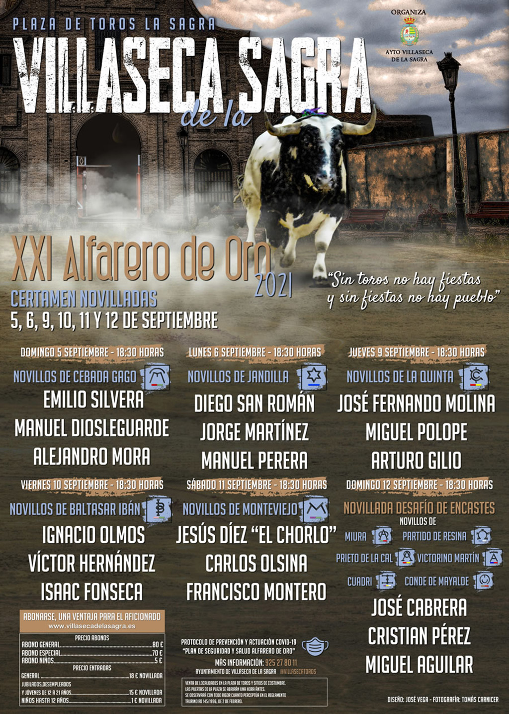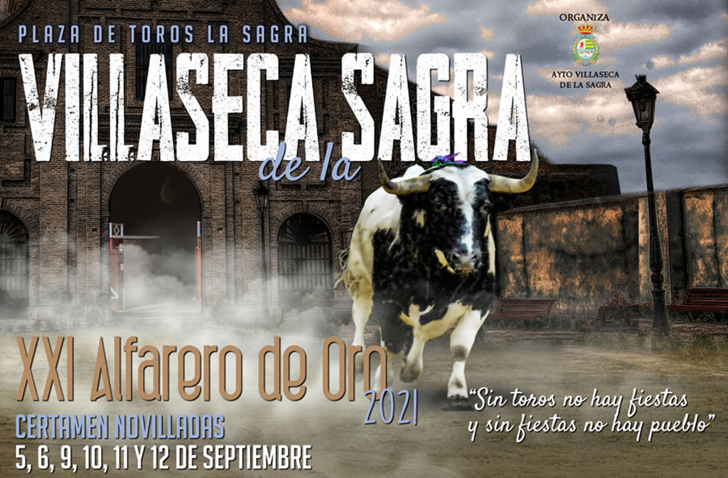 El Ayuntamiento de Villaseca de la Sagra (Toledo) ha presentado los carteles del “XXI CERTAMEN DE NOVILLADAS ALFARERO DE ORO Feria 2021” que se celebrará durante los días 5, 6, 9, 10, 11 y 12 de Septiembre de 2021 con motivo de las Ferias y Fiestas en Honor a “Ntra. Sra. De las Angustias” patrona de la localidad.