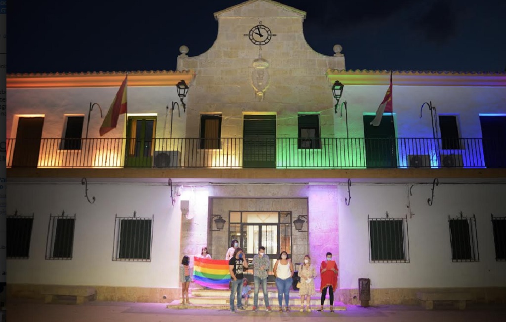 Previamente a la lectura se iluminó la fachada del Ayuntamiento con los colores de la bandera arcoíris, cuya variedad de colores viene a simbolizar la diversidad de la comunidad LGTBIQ+ y del orgullo de las diferentes orientaciones sexuales e identidades de género.