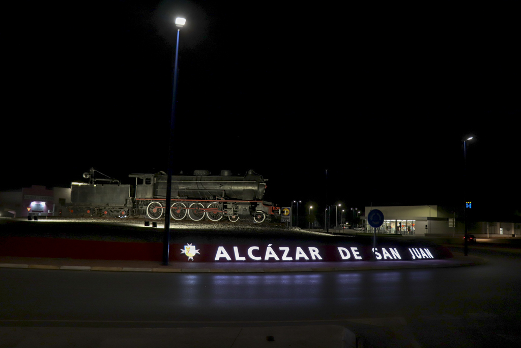 Desde la noche del 3 de agosto ha comenzado a funcionar la iluminación artística que se ha instalado en la Rotonda de la Locomotora (antigua rotonda de entrada de la N 420) de Alcázar de San Juan. Se trata del nombre de la ciudad junto con el escudo iluminado. Con esta actuación se da por concluida la decoración ornamental de la Rotonda.