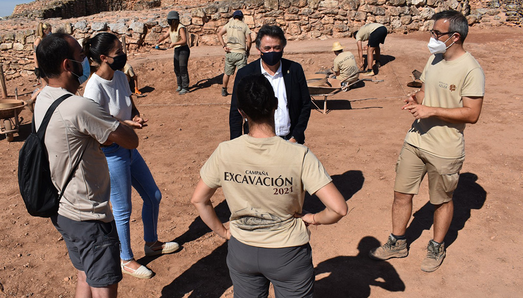 El martes comenzaron parte de los trabajos previstos en el yacimiento arqueológico daimieleño y que afectan a la zona exterior del poblado, un área de hábitat en la que, según ha explicado el arqueólogo municipal, Miguel Torres, podría detectarse una línea de muralla más externa de cumplirse el pronóstico de los últimos análisis geofísicos. El alcalde de la localidad, Leopoldo Sierra, junto a la concejal de Cultura, Lourdes Rodríguez de Guzmán, han visitado la fortificación desde donde se han interesado por las tareas que ocupan a los ocho alumnos que participan de la campaña.