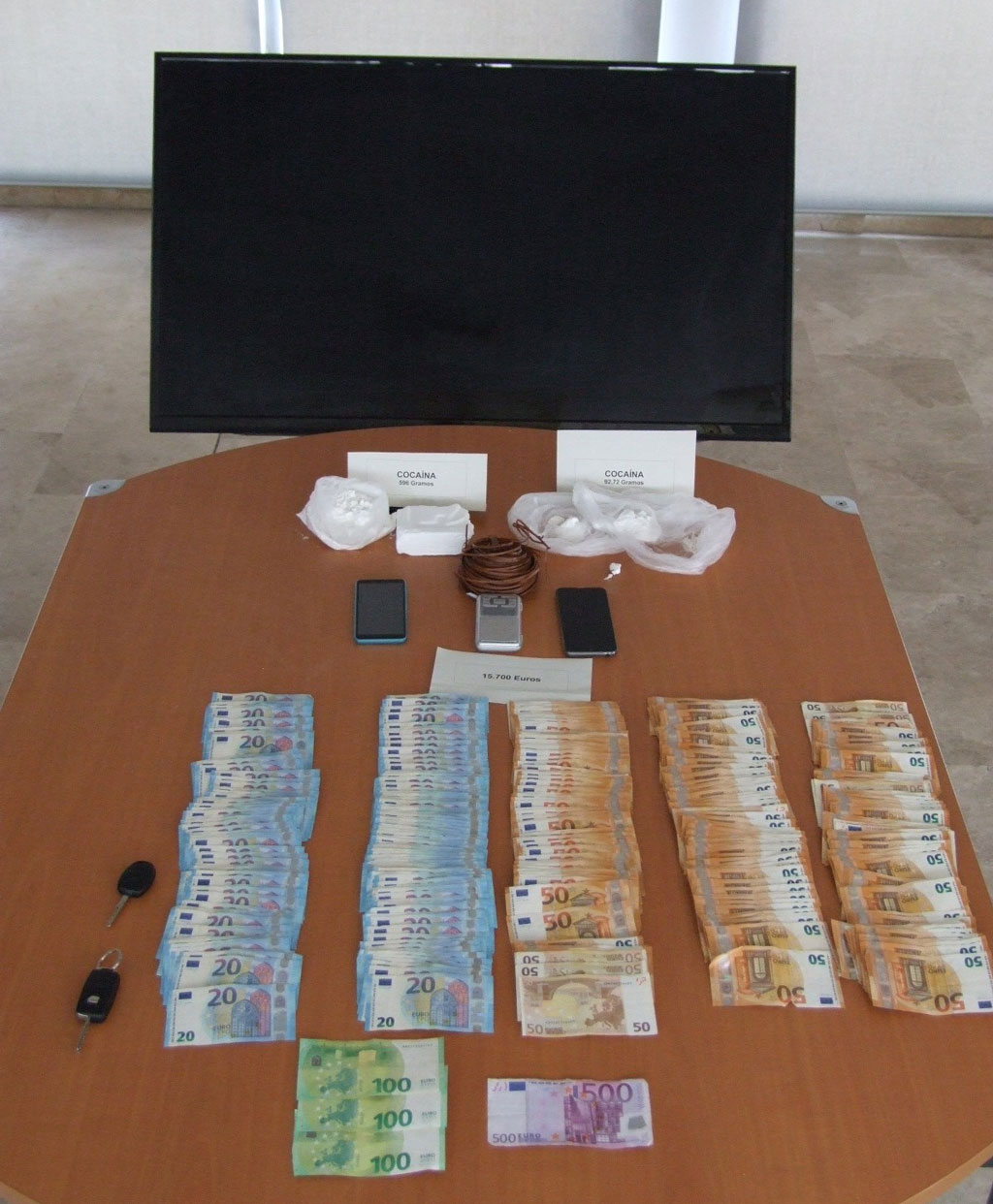 Fruto del registro efectuado, la Guardia Civil ha logrado intervenir 800 gramos de cocaína, de ellos unos 100 gramos de gran pureza, 15.700 euros en efectivo, numerosos teléfonos móviles y dos vehículos.
