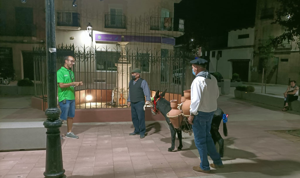 Los participantes visitaron también el caño de la iglesia, lugar histórico que abastecía de agua a la localidad. Durante la actividad se recreó como los “aguaores” con las borricas cargadas con cántaras iban a recoger agua para abastecer las viviendas de Herencia, y como los cañeros eran los encargados de gestionar esta labor. A los asistentes se les ofreció de recuerdo una cartilla fac simil con los antiguos cupones utilizados para venta del agua.