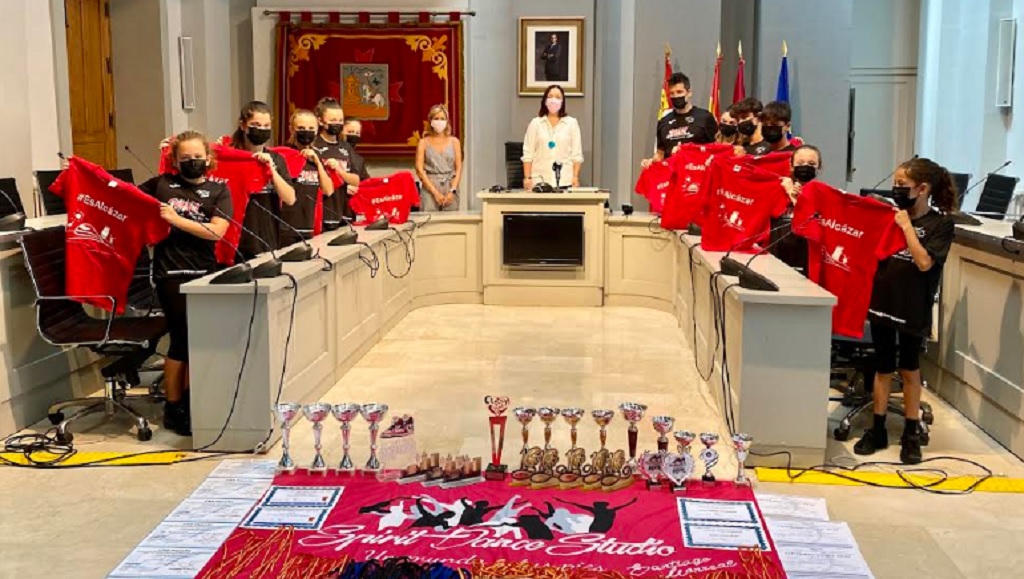 Finalmente, la alcaldesa entregó al grupo de alumnos y alumnas de Spirit Dance Studio y a su coreógrafo, una camiseta #EsAlcázar como ocurre con estudiantes o deportistas que representan a Alcázar en competiciones fuera de la ciudad.