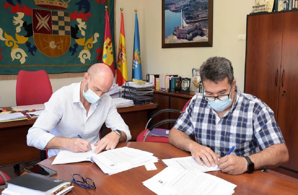 Para seguir avanzando hacia la apertura del servicio, Pedro Ángel Jiménez, alcalde de Argamasilla de Alba, y Bonifacio Olmo, en representación de Salones BOYMA S.L., han rubricado este jueves el contrato de concesión para la prestación del servicio de Comedor Escolar Municipal por un importe de 51.784,09 € más IVA.