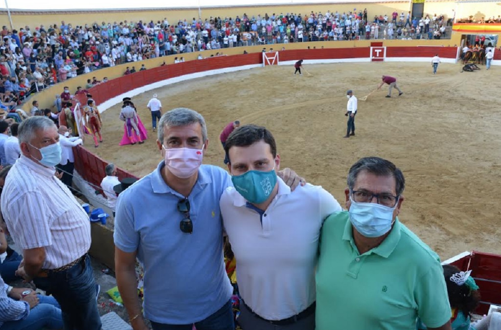 Álvaro Gutiérrez asistía en Fuensalida a primera hora de la tarde a la Gran Novillada con Picadores Picada que se ha celebrado en la plaza de toros de la localidad y en la que han toreado los novilleros Cristian Pérez, Jorge Molina y Álvaro Alarcón y que ha seguido con Santi Vera y su equipo de Gobierno que compartían graderío con las reinas y las damas de las Ferias y Fiestas 2021 en honor de sus patronos, el Santísimo Cristo del Olvido y la Virgen de la Soledad.