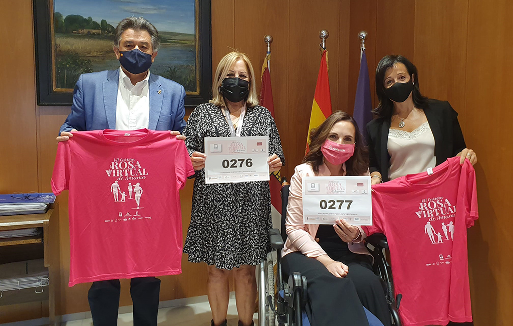 Tras la reunión, Sierra y Loro han recibido las camisetas y dorsales que podrán utilizar el próximo fin de semana en la VII Carrera Virtual Rosa de AMUMA.