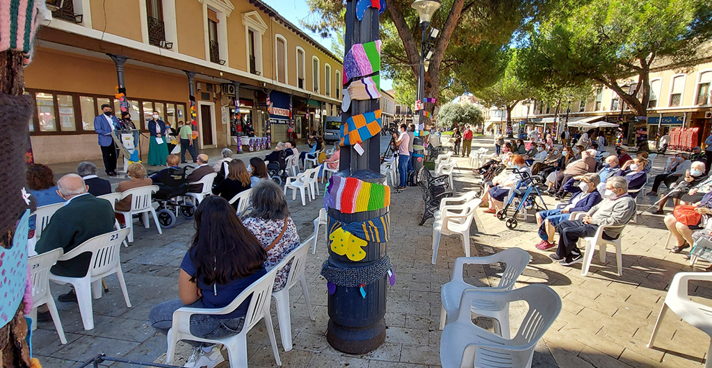 El acto institucional para conmemorar el Día Mundial del Alzheimer en Daimiel se ha celebrado este martes 21 de septiembre, en la Plaza de España. Este año, además del público, también han sido testigos del evento los más de medio millar de abrazos de ganchillo y punto que, gracias a la iniciativa del Centro de Alzheimer, adornan árboles y farolas del centro de la ciudad.