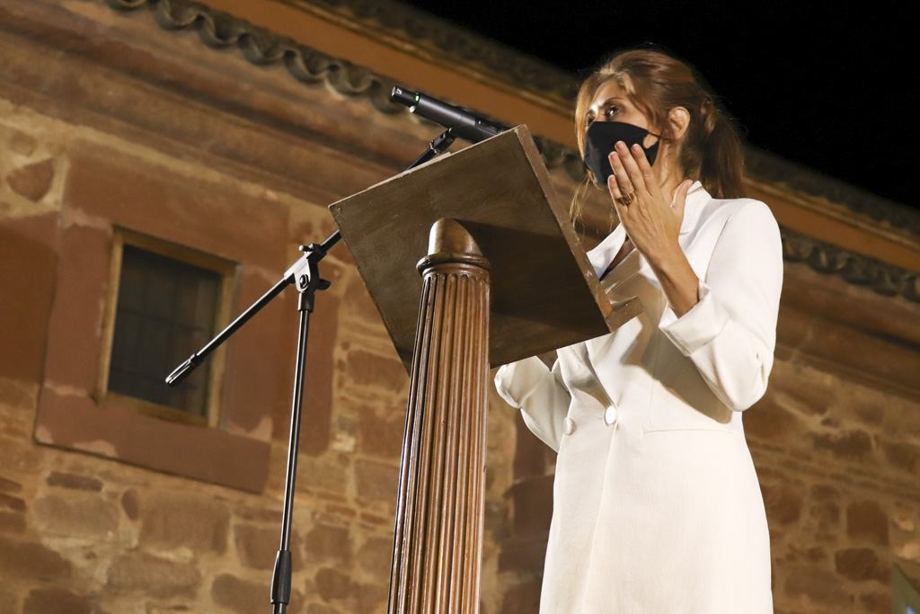 Durante todo el pregón Patricia Bentarcort realzó el fervor y la devoción que se tiene a la Virgen del Rosario y como los alcazareños saben transmitir esos sentimientos y emociones.