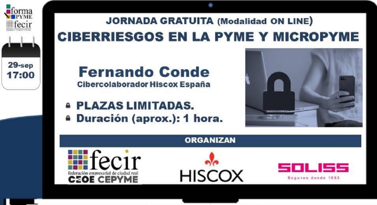 Las compañías de seguros HISCOX y SOLISS, conscientes de estos nuevos riesgos a los que se enfrentan las empresas de la provincia, han querido colaborar con el Departamento de Formación de FECIR en la organización de este seminario, de aproximadamente una hora de duración, que les introducirá en la materia de ataques cibernéticos y posibles consecuencias para sus negocios, así como herramientas que minimicen los riesgos.