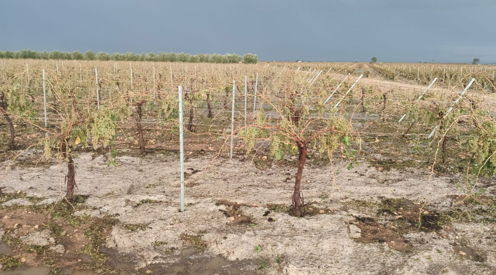 La viña fue el cultivo más afectado. La vendimia no había hecho nada más que empezar con la recogida de las variedades más tempranas, según explica José Manuel Marcos Alberca, presidente local de ASAJA en Campo de Criptana. “Las cepas estaban a punto de llegar a su estado óptimo, cuajadas de uvas; pero tras la tormenta solo quedaba desolación”, recuerda. En la mayor parte de las parcelas los daños han sido superiores al 80%, y no todo el mundo tenía seguro. Ha pasado ya un mes y desde la Junta Directiva de la organización agraria local apelan a la sensibilidad de las administraciones, a las que piden colaboración ante el año tan complicado que afrontan los agricultores.