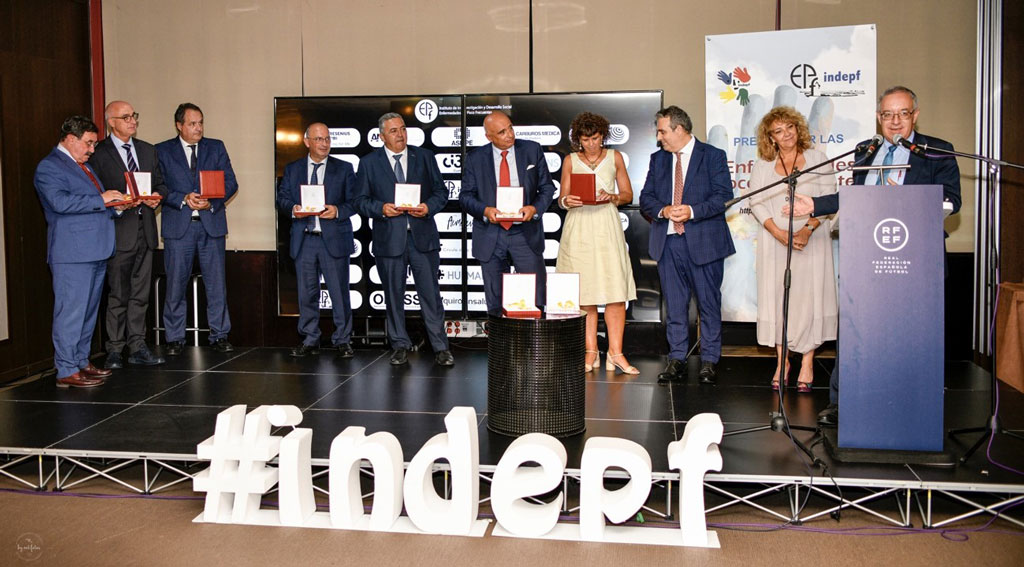 INDEPF (Instituto de Investigación y Desarrollo Social de Enfermedades Poco Frecuentes), celebraba el pasado jueves 30 de septiembre sus Premios Por Las Enfermedades Poco Frecuentes 2021, en los que se tuvo el placer de contar con la presencia de diferentes celebridades y diversos profesionales de los sectores sanitario, médico, farmacéutico, deportivo, del ámbito de la comunicación, etc… Los cuales fueron galardonados por su excelencia y profesionalidad en sus respectivas áreas.