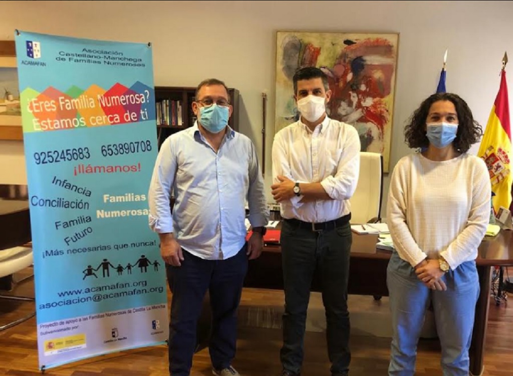 En la mañana del jueves, 7 de octubre, el alcalde de Campo de Criptana, Santiago Lázaro y la concejala de Servicios Sociales, Virginia Pintor, se han reunido con Eduardo Galicia, presidente de la asociación castellano-manchega de familias numerosas (ACAMAFAM) para analizar el trabajo que, hasta ahora, se viene desarrollando desde el Ayuntamiento en favor de este tipo de familias, con número e importante presencia en la localidad.