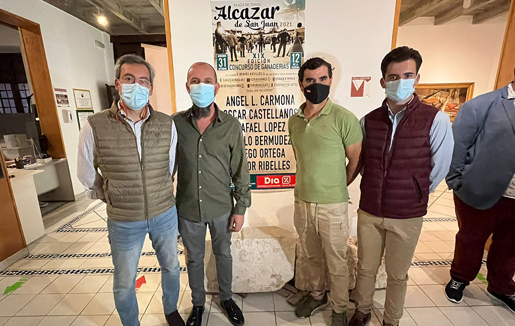 En el acto han estado presentes el organizador del festejo, Óscar Castellanos (quien además interviene en el festejo) y el Concejal de Cultura del consistorio alcazareño, Mariano Cuartero. Además han estado presentes dos de los intervinientes en el mismo, como son Diego Ortega, aficionado práctico que realiza el paseíllo en la plaza de Alcázar por primera vez, y Víctor Ribelles, alumno de la Escuela Taurina de la localidad.