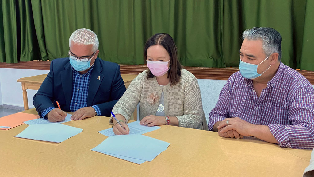 Carlos Ortiz, presidente de Mancha Norte, y Rosa Melchor, alcaldesa de Alcázar de San Juan, han hecho efectiva la firma del convenio de colaboración para acometer la sustitución del vallado de la piscina de Alameda de Cervera.
