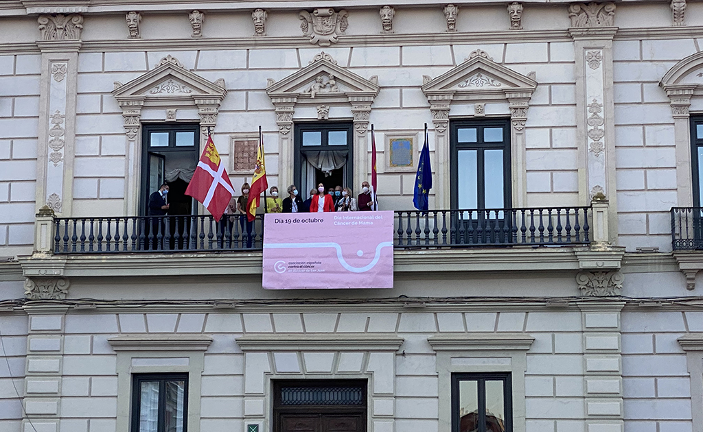 Desde esta mañana del balcón del Ayuntamiento de Alcázar de San Juan cuelga una pancarta conmemorativa del Día Mundial contra el Cáncer de Mama.