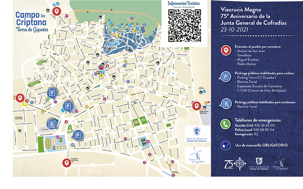 Igualmente, se colocarán carteles informativos, en los diferentes accesos al término municipal, para indicar el recorrido hasta los diferentes parkings, evitando interferir en el recorrido del Viacrucis.