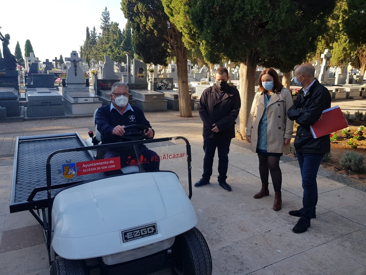 Este miércoles, 20 de octubre, ha sido presentado el nuevo vehículo eléctrico portaféretros para el Cementerio Municipal de Alcázar de San Juan, en el que el Consistorio ha invertido algo más de 9.000 euros.