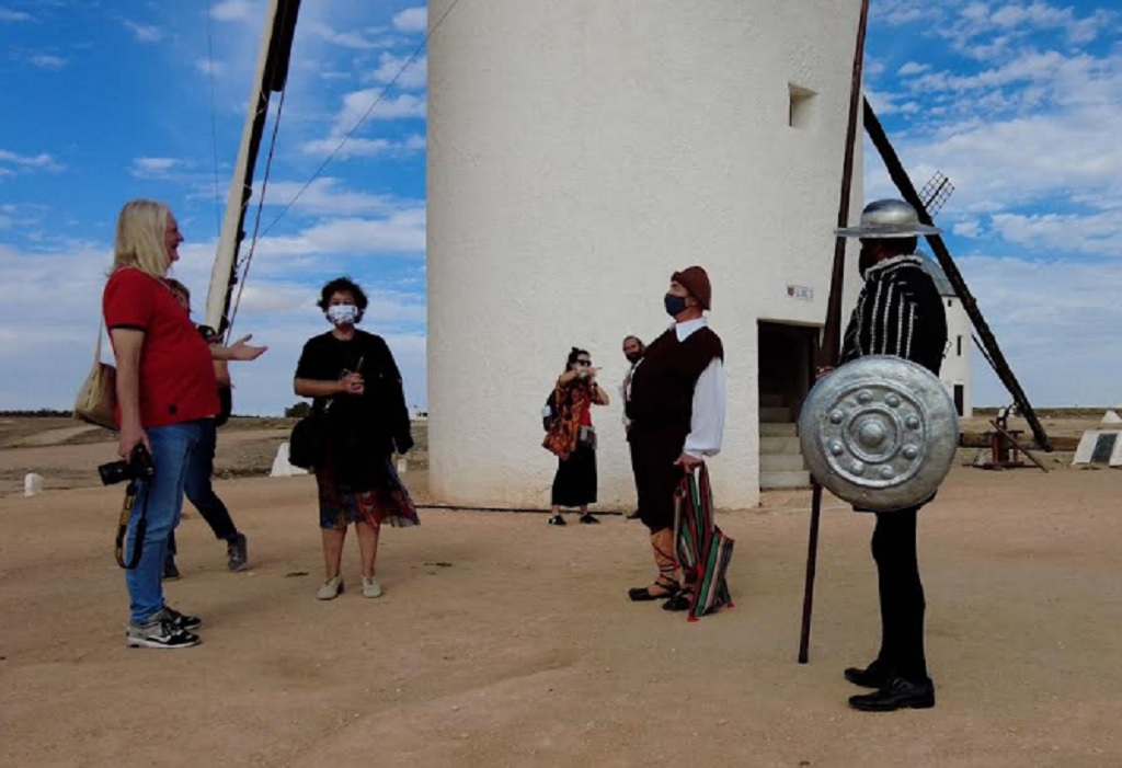 Dos de los establecimientos adheridos a la ruta, Las Musas y Bodegas Castiblanque, colaboraron con el Ayuntamiento en la organización de la visita, en la que también pudieron conocer cómo se realizaba una molienda tradicional, además de saber más sobre la ciudad y su simbolismo cervantino con la representación del famoso Capítulo 8º de ‘Don Quijote de La Mancha’ y su lucha con los gigantes. Una representación que corrió a cargo de la asociación Hidalgos Amigos de los Molinos.