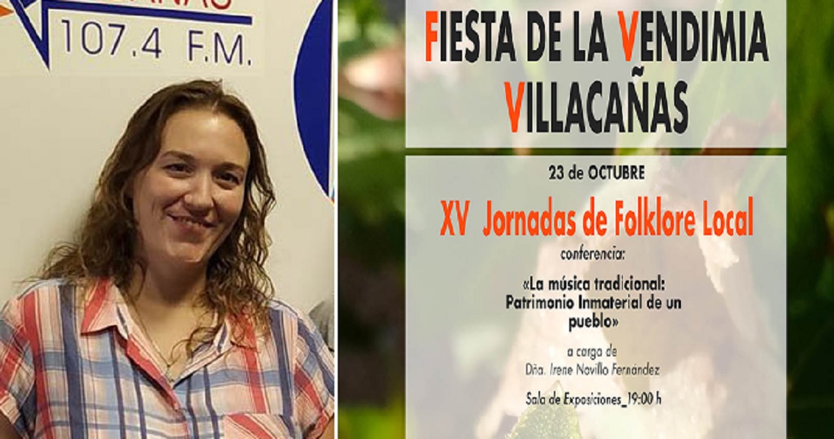El primero de los eventos de la Fiesta de la Vendimia es una conferencia a cargo de Irene Novillo Fernández, titulada “La música tradicional: Patrimonio Inmaterial de un pueblo”, en la Sala Municipal de Exposiciones a partir de las 19:00 horas.
