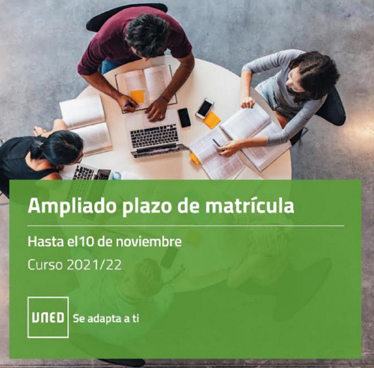 La UNED ha ampliado el plazo de matrícula para los estudios de Grado, Grados Combinados, Másteres Oficiales, Centro de Idiomas (CUID), Curso de Acceso para Mayores de 25 y 45 años y Microtítulos hasta el próximo 10 de noviembre. Además, permanecen abiertos los periodos de matriculación de la Escuela Internacional de Doctorado hasta el 17 de noviembre, y de Formación Permanente y Profesional hasta el 30 de noviembre en plazo ordinario y hasta el 17 de enero de 2022 en periodo extraordinario. De esta forma, la universidad quiere facilitar el acceso a la Educación Superior universitaria a todos aquellos interesados en completar su formación.