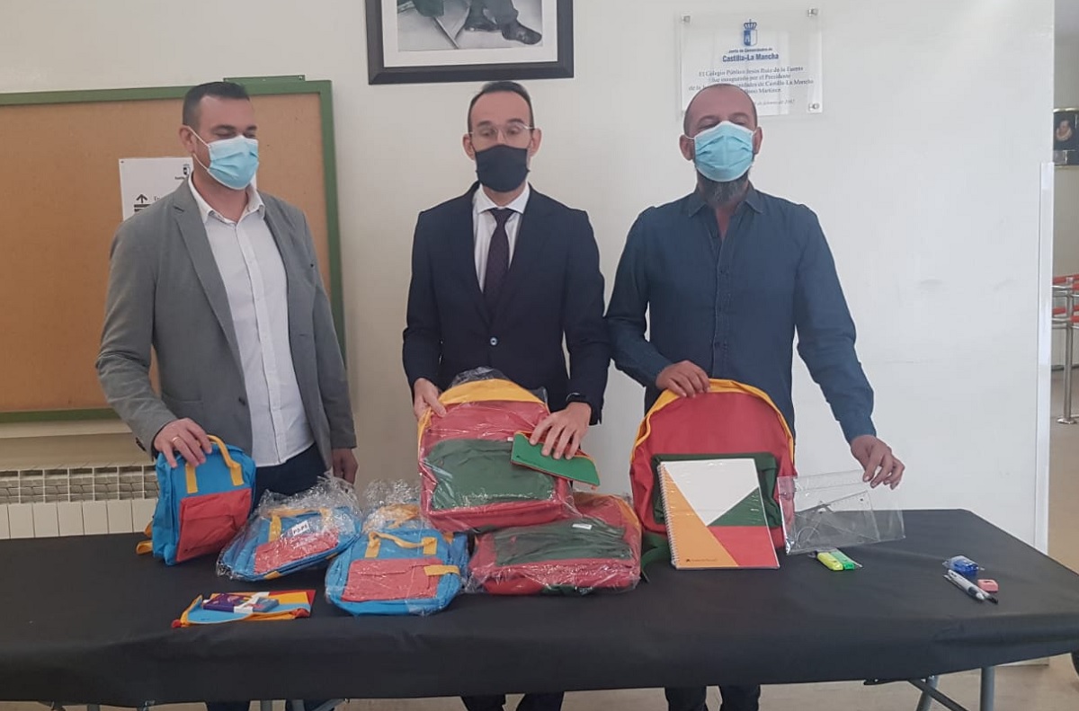 Este miércoles, 27 de octubre, han sido repartidos entre los distintos colegios de Alcázar de San Juan. 150 kits escolares para alumnos con familias vulnerables. El acto de entrega, en el que han participado el concejal de Cultura, Mariano Cuartero, y el representante de La Caixa Raúl Peralta, se ha desarrollado en el colegio público Jesús Ruiz.