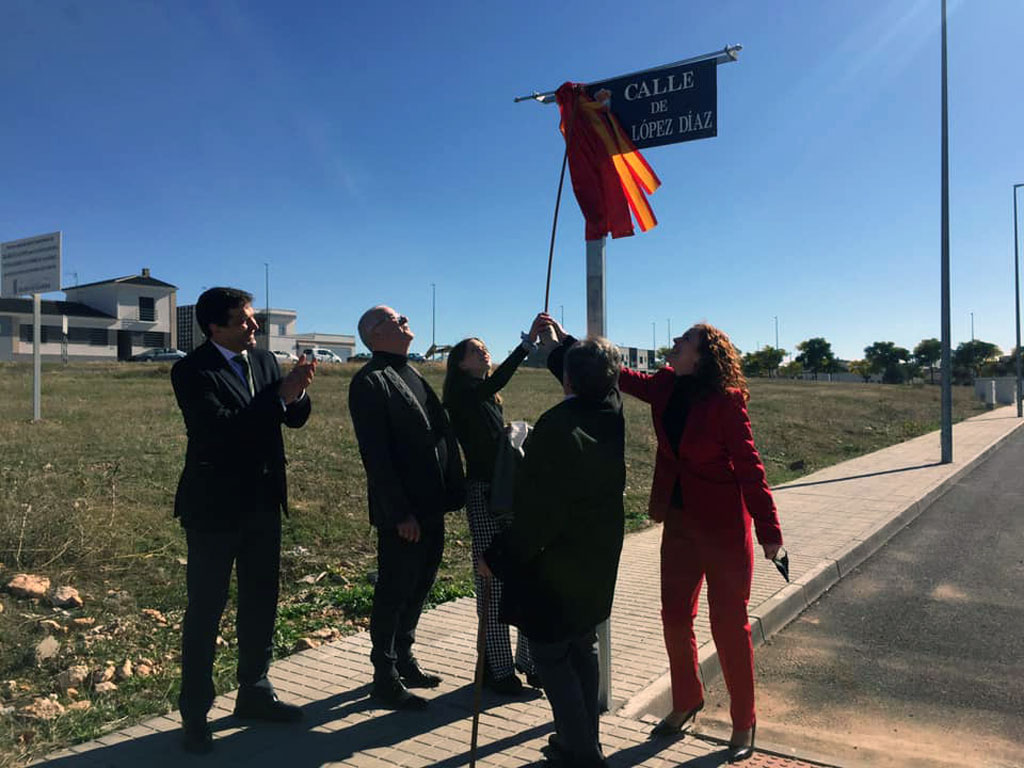 El alcalde de Bolaños, Miguel Ángel Valverde, junto a la Corporación Municipal acompañaron a la familia y amigos de Elisa López Díaz en el acto del descubrimiento de placa con el nombre de la calle dedicada a la misma.